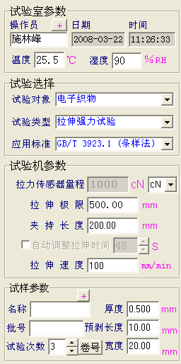 電子織物強力機的“速度系數”:“拉伸長度”處的數據偏大,則將“速度系數”調小,反之亦然。