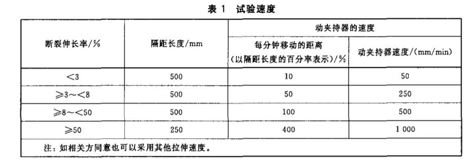 ①.夾持距離當(dāng)試樣的平均斷裂伸長率小于50%時(shí)為(500土1.0)mm;