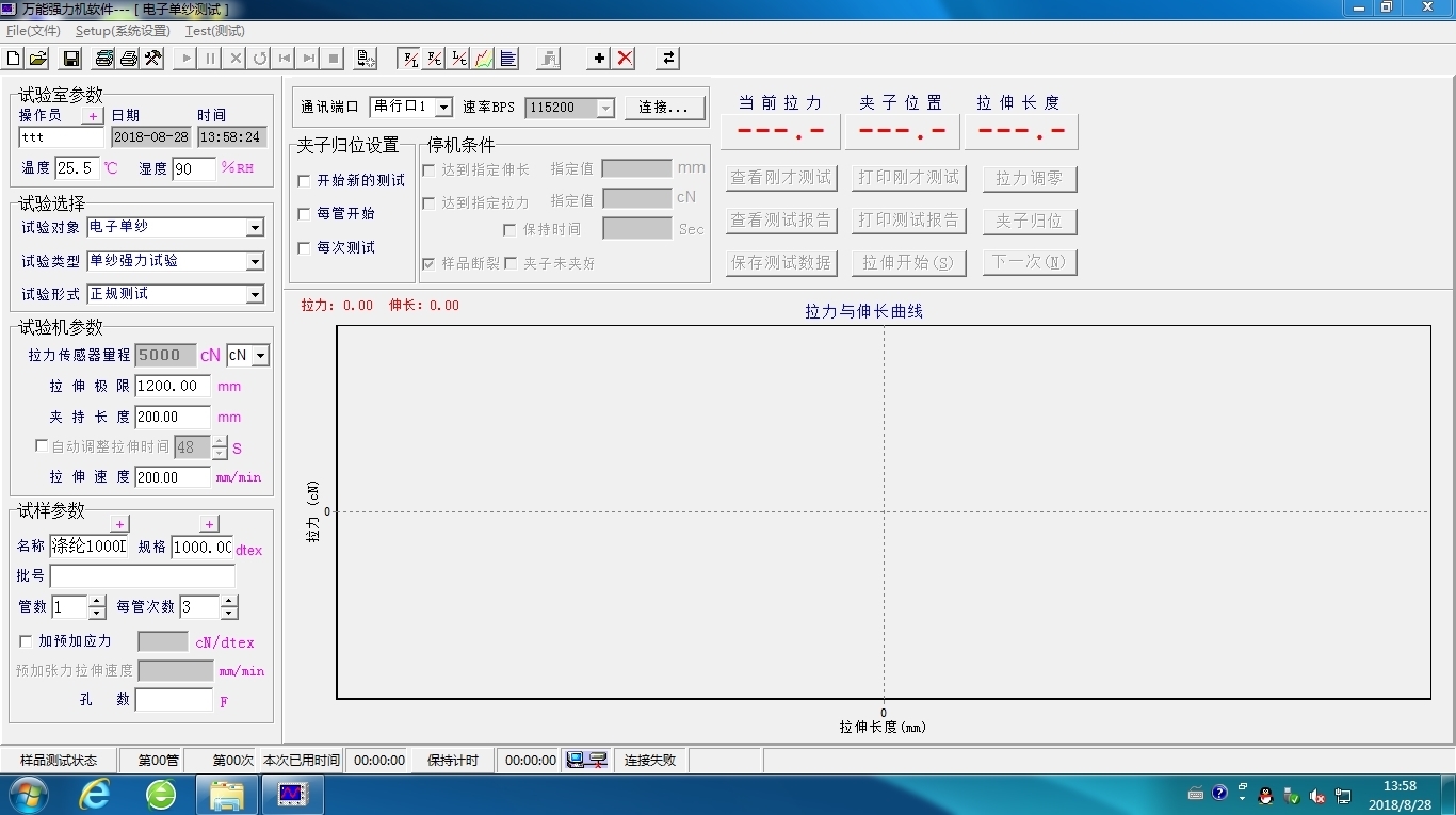【YG020B型電子單紗強(qiáng)力機(jī)(柜式)軟件界面】