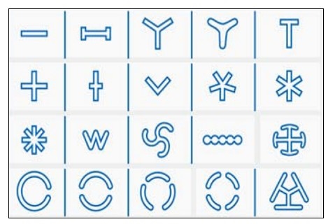 噴絲板孔型多數(shù)分為圓形,當(dāng)然三葉型也是比較常見的,也有如C型,扇形等不規(guī)則孔型,而圓形是使用最為廣泛的形狀,以下是常見異形孔形狀: