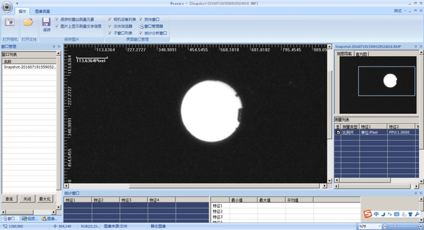 (5)SG689手動(dòng)噴絲板鏡檢儀(帶軟件),主要原理和SG689相同,但是該款噴絲板鏡檢儀是可以連接到電腦的(采用USB相機(jī)安裝驅(qū)動(dòng)后可連接到電腦),首先對(duì)于采集到的圖像可以進(jìn)行預(yù)處理,如圖像的銳化,圖像的二值化,圖像的濾噪,并且配有軟件來測量各種孔形的詳細(xì)尺寸。同時(shí)還可以生成檢測報(bào)告,對(duì)檢測的微孔圖片進(jìn)行保存,方便對(duì)噴絲板的各項(xiàng)參數(shù)進(jìn)行統(tǒng)計(jì),軟件界面如下。主要分為標(biāo)配軟件和定制軟件: