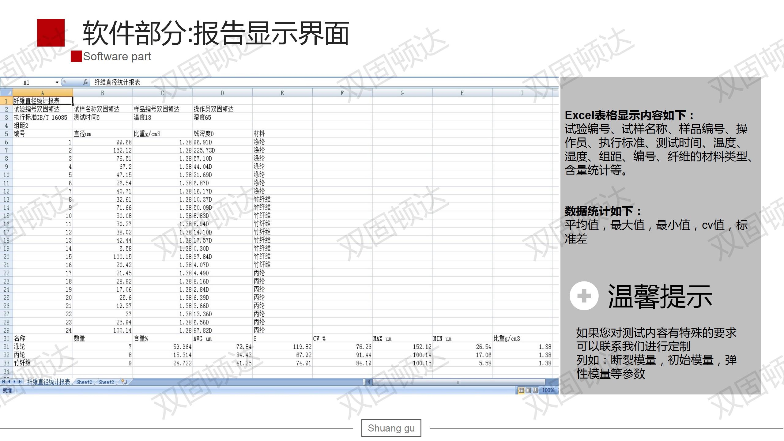 【功能3】本設(shè)備可以用于動(dòng)物纖維(如兔毛、羊毛)、化學(xué)纖維(如滌綸,錦綸,丙綸)、棉麻等纖維直徑測量,測量速度快操作簡便,減少人為誤差。