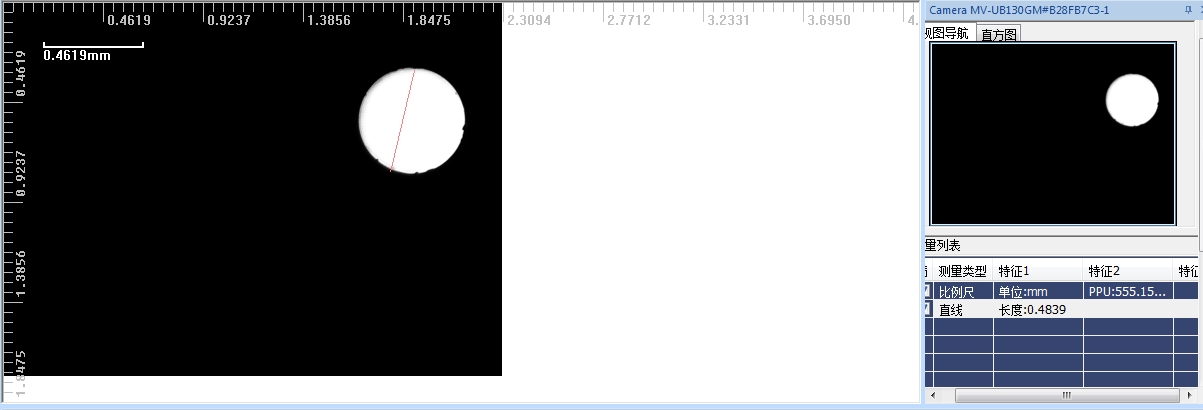 測量軟件測量噴絲板微孔大小,圖中圓形噴絲板微孔直徑0.4839mm