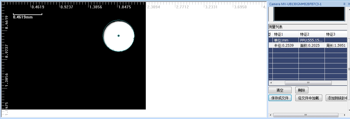 測量軟件測量噴絲板微孔半徑0.2539mm,面積0.2025mm2,周長1.5951mm