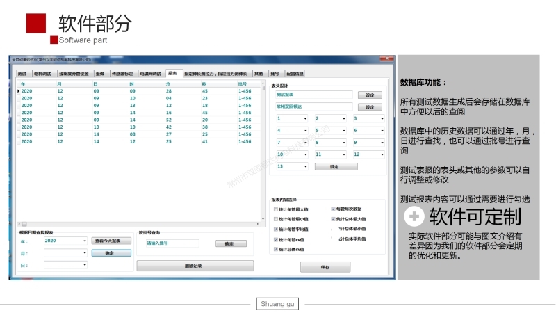 6、具有大數(shù)據(jù)統(tǒng)計(jì)功能,可生成周、月、年報(bào)表,方便客戶控制產(chǎn)品質(zhì)量。