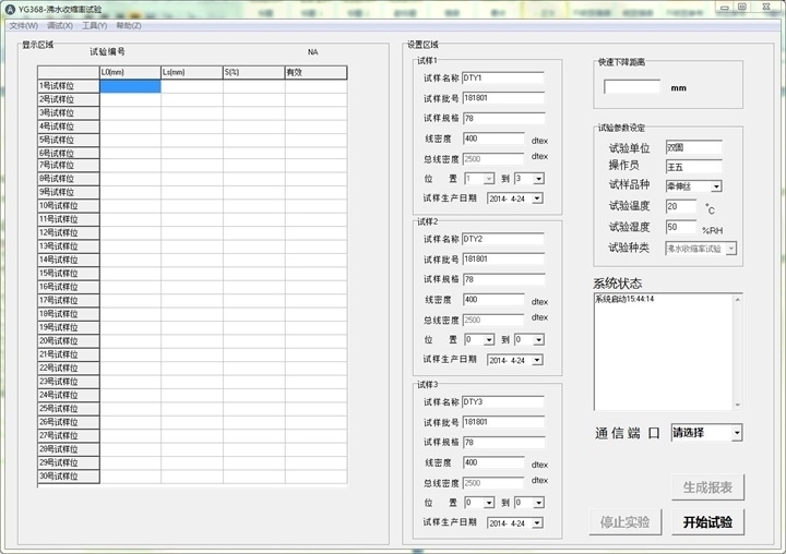 【YG368型全自動(dòng)卷曲收縮率儀電腦軟件信息設(shè)置界面】