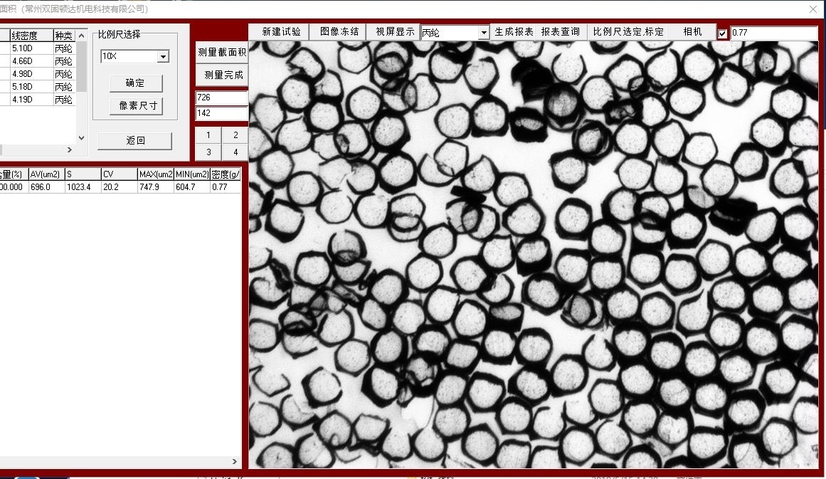 【功能1】強大的測量軟件(測量纖維直徑,截面積,纖維線密度D,統(tǒng)計含量)