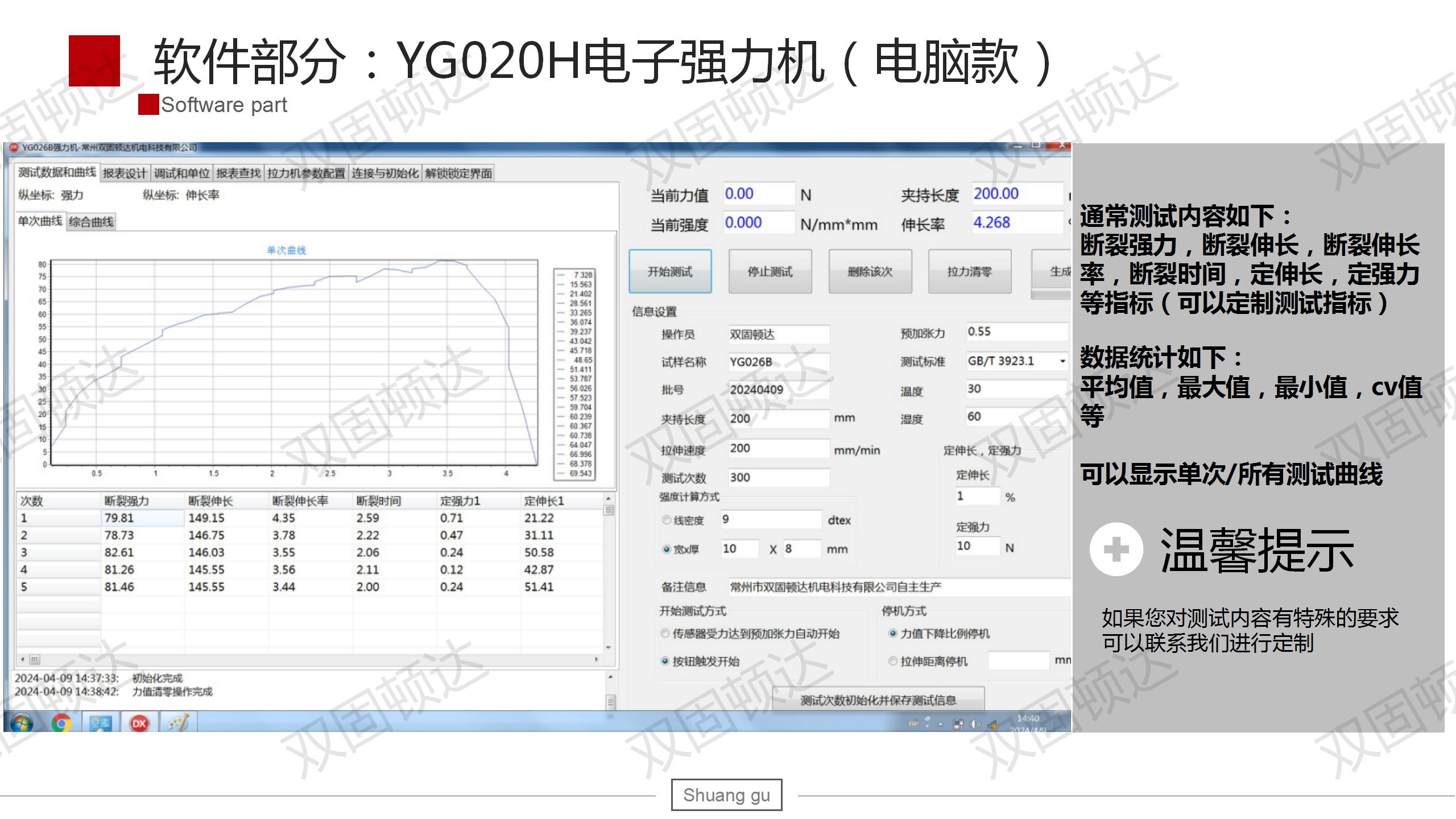 9、打?。簲嗔褟?qiáng)力,斷裂伸長率以及統(tǒng)計(jì)報(bào)表