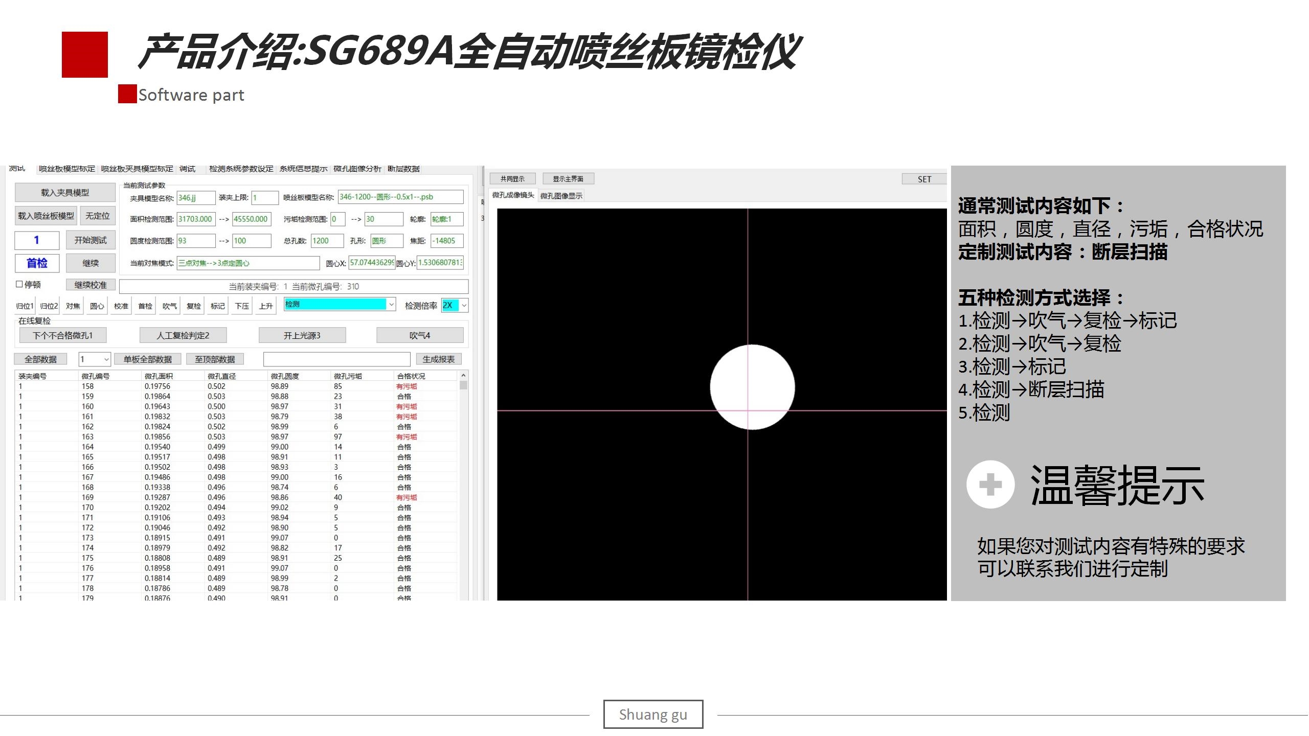 3.軟件內(nèi)置5種檢測方式(檢測→吹氣→復(fù)檢→標(biāo)記→斷層掃描),可以根據(jù)實際測試需求自行選擇。